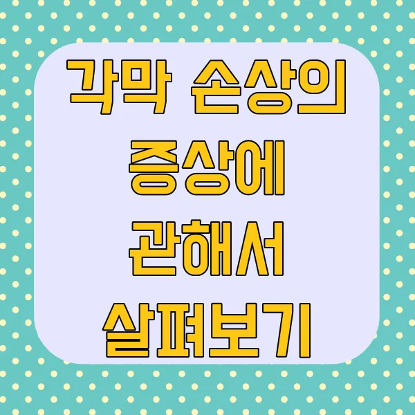눈부심 (광과민성): 밝은 빛에 노출되었을 때 과도하게 눈이 부시거나 통증을 느끼는 경우, 각막 손상으로 인해 빛이 정상적으로 통과하지 못하고 산란되기 때문일 수 있습니다.