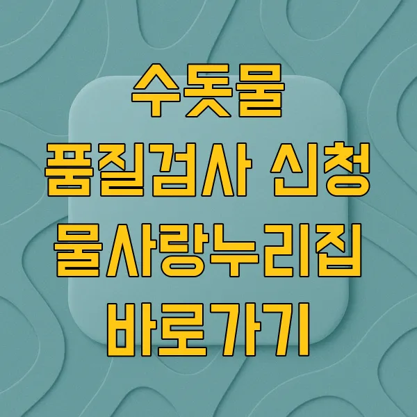 - 수질검사 신청 메뉴 클릭 : 홈페이지 메인 화면에서 "수돗물 품질확인" 또는 "가정용 수질검사 신청" 메뉴를 찾아 클릭합니다. 👀
