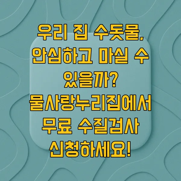 우리 가족이 마시는 물, 꼼꼼하게 확인하고 안심하세요! 물사랑누리집에서 간단하게 수질검사 신청하고, 깨끗하고 건강한 물을 마시자구요! 오늘도 건강하고 행복한 하루 보내세요! 😊