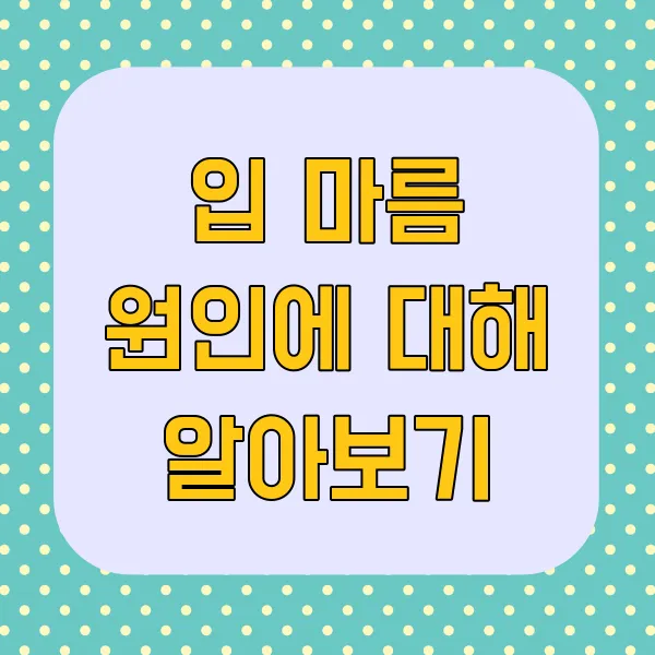 - 가습기 사용 : 건조한 환경은 입 마름을 악화시킬 수 있습니다. 가습기를 사용하여 실내 습도를 적절하게 유지하는 것이 좋습니다.